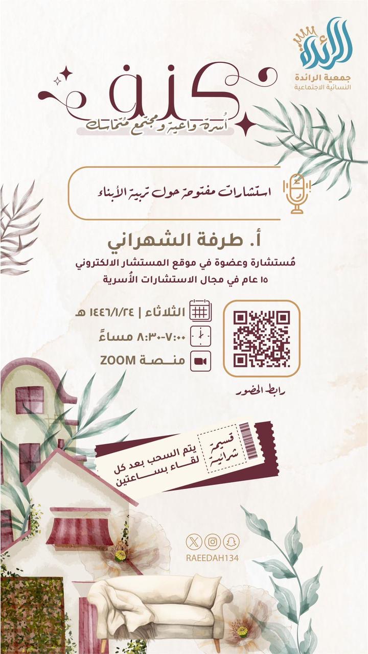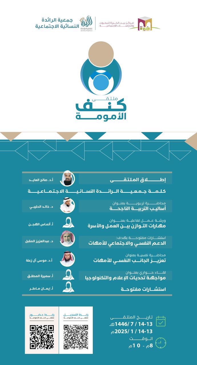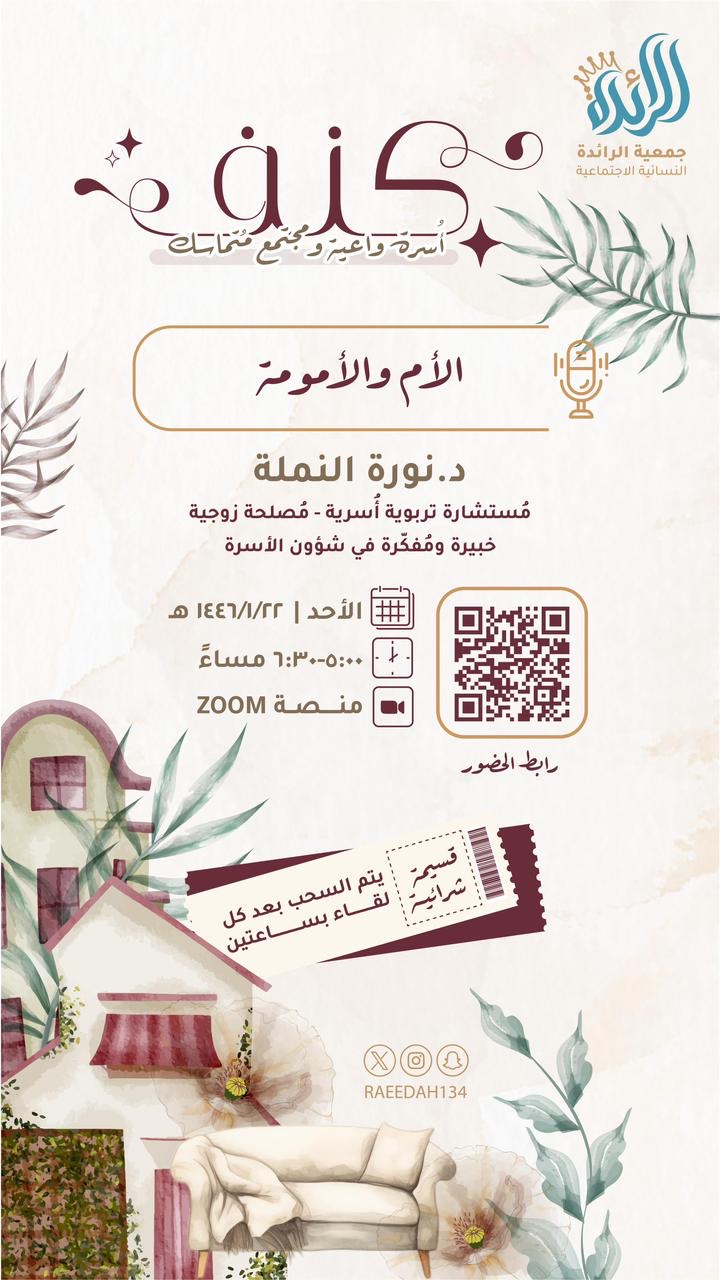 يسر جمعيّة الرائدة النسائية الاجتماعية بخميس مشيط ومركز بيت الخبرة للبحوث والدراسات الاجتماعية دعوة *الأمهات الفاضلات* في مملكتنا الحبيبة لحضور: