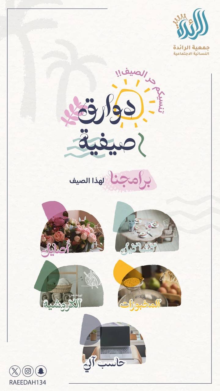 ويُقدم في دوارق صيفية برامج ودورات وفعاليات تتناسب مع كافة الفئات التي تخدمها الجمعية، من الفتيات في مختلف المراحل العمرية.